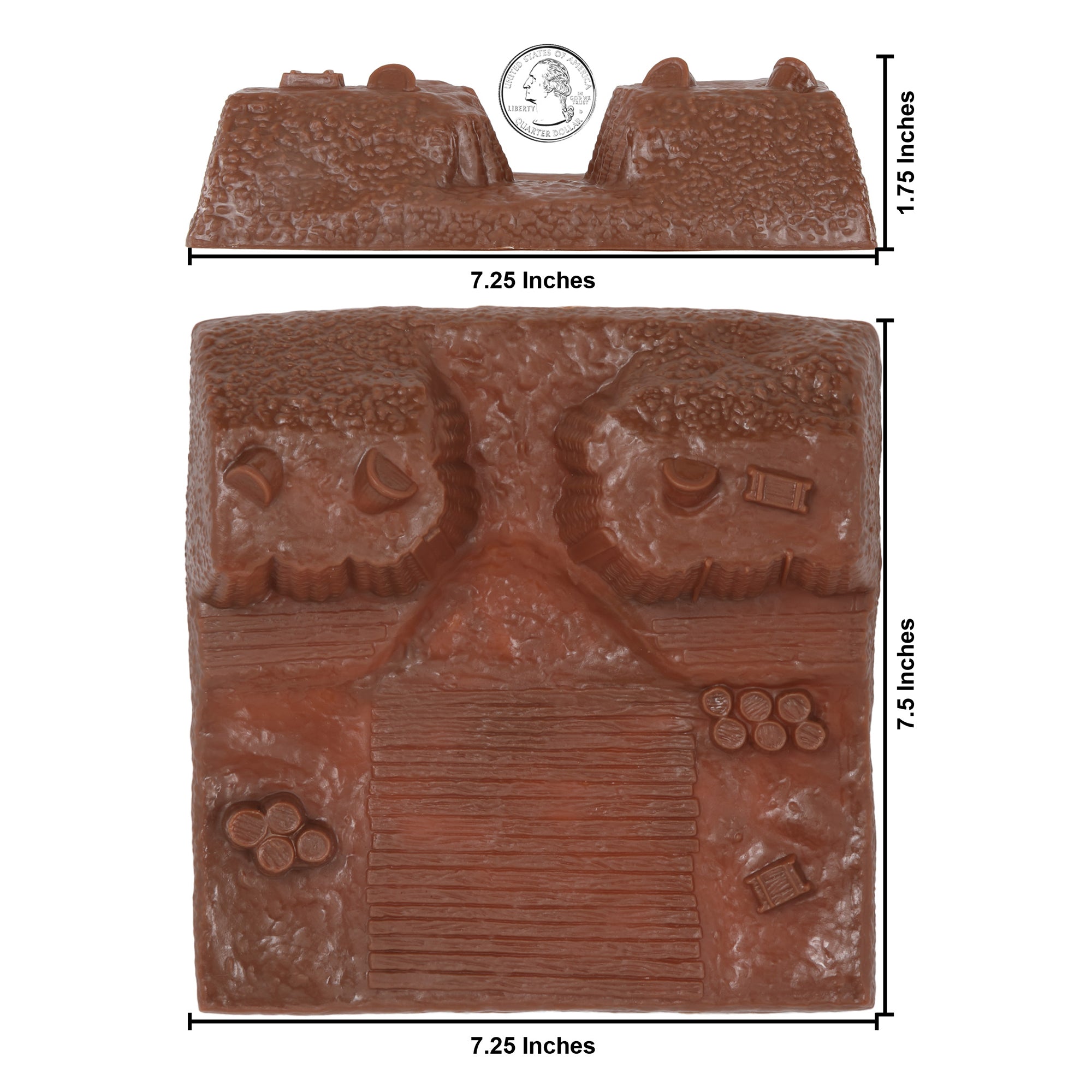 From the BMC Toys American Hero Collector Series, the American Revolutionary War Redoubt Terrain includes 2 earthwork artillery emplacements with basket gabions and supplies. Each redoubt measures 7.5 inches x 7.25 inches wide x 1.75 inches tall and are approximately 1:32 scale. Made from stiff brown color ABS plastic.