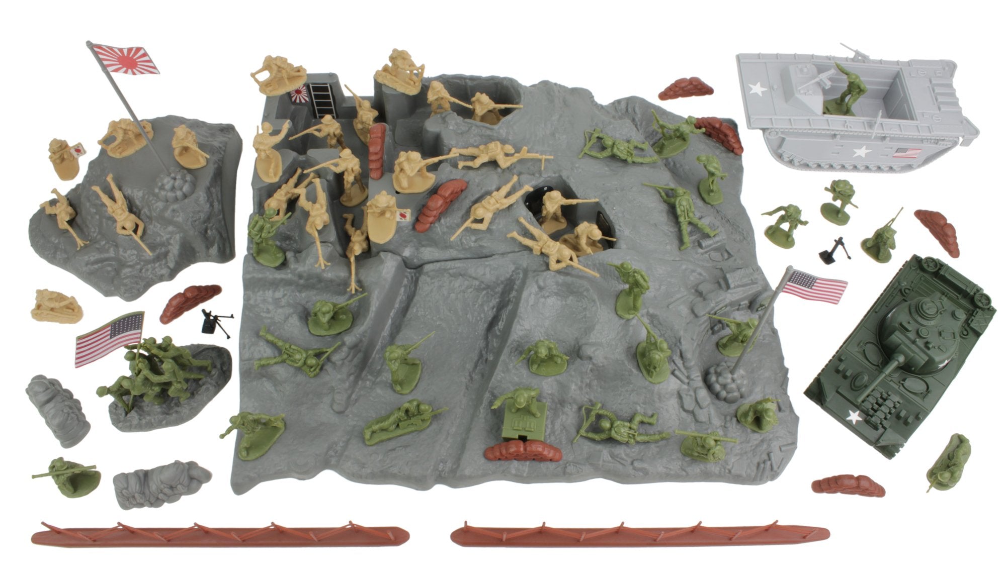 BMC WW2 Iwo Jima Plastic Army Men - Island, Tanks & Soldiers 72pc Playset
