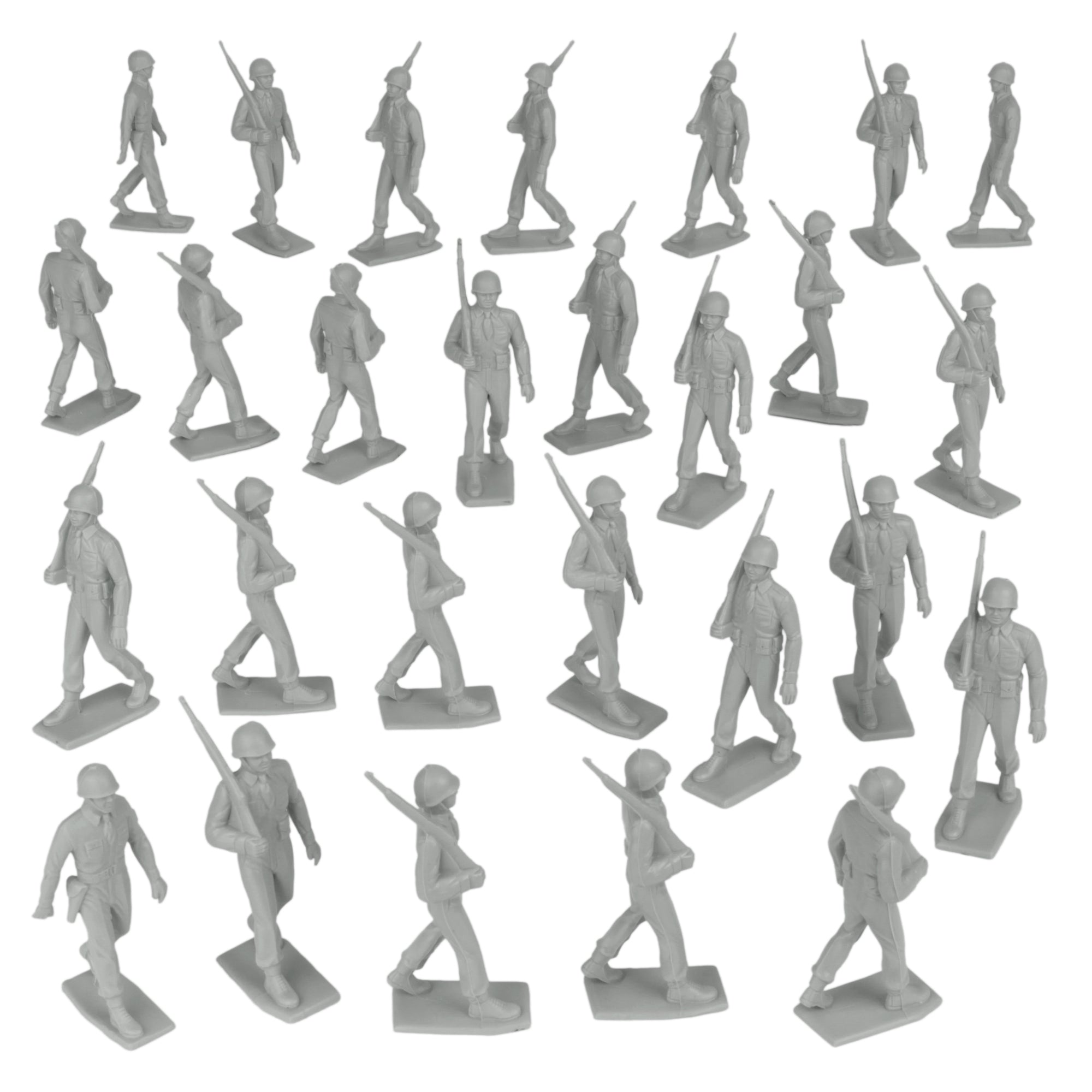 BMC Marx Plastic Army Men Marching US Soldiers - Gray 27pc WW2 Figures - US Made